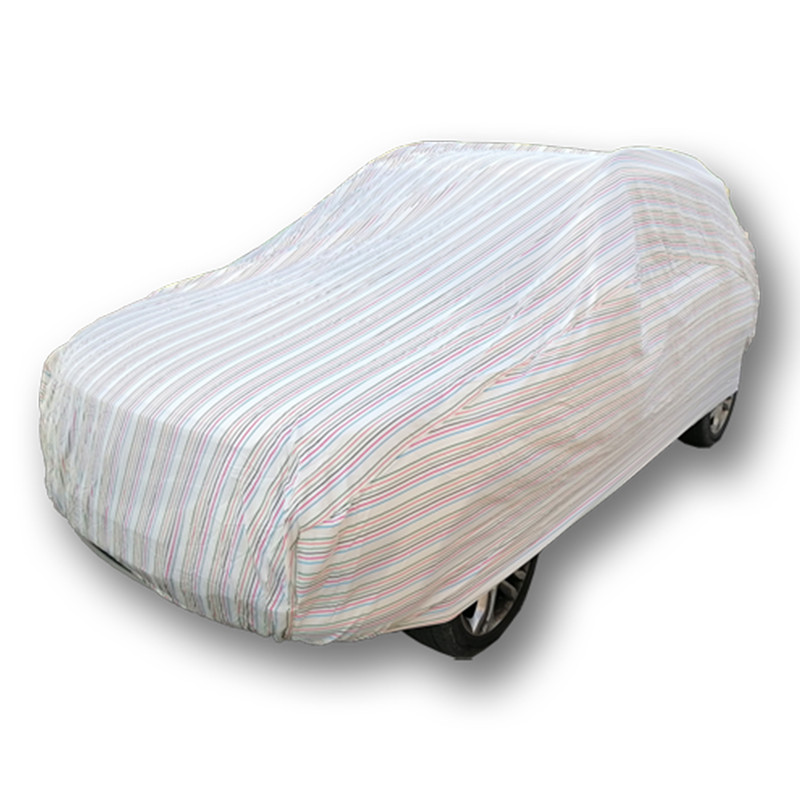 چادر خودرو برزنتی معمولی سایز دو ایکس لارج (XXL)، مناسب خودروی کیا اسپورتیج می باشد، همچنین می توان برای انواع شاسی بلند های دیگر نیز استفاده نمود. این چادر با دارا بودن ضخامت نسبتا خوب و بافت ریزی که دارد، به خوبی از خودروی شما در مقابل نور آفتاب، و گردو خاک محافظت می کند. همچنین حداقل دوام آن 3 سال می باشد. در جلو و عقب چادر کش دوزی انجام شده است که به خوبی و بصورت محکم به زیر سپرهای خودرو نصب می شود. همچنین تا نصف بیشتر لاستیک خودرو را پوشش می دهد و کلیه درزها، دوبار دوخته شده است.