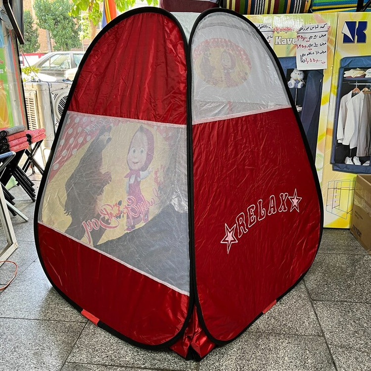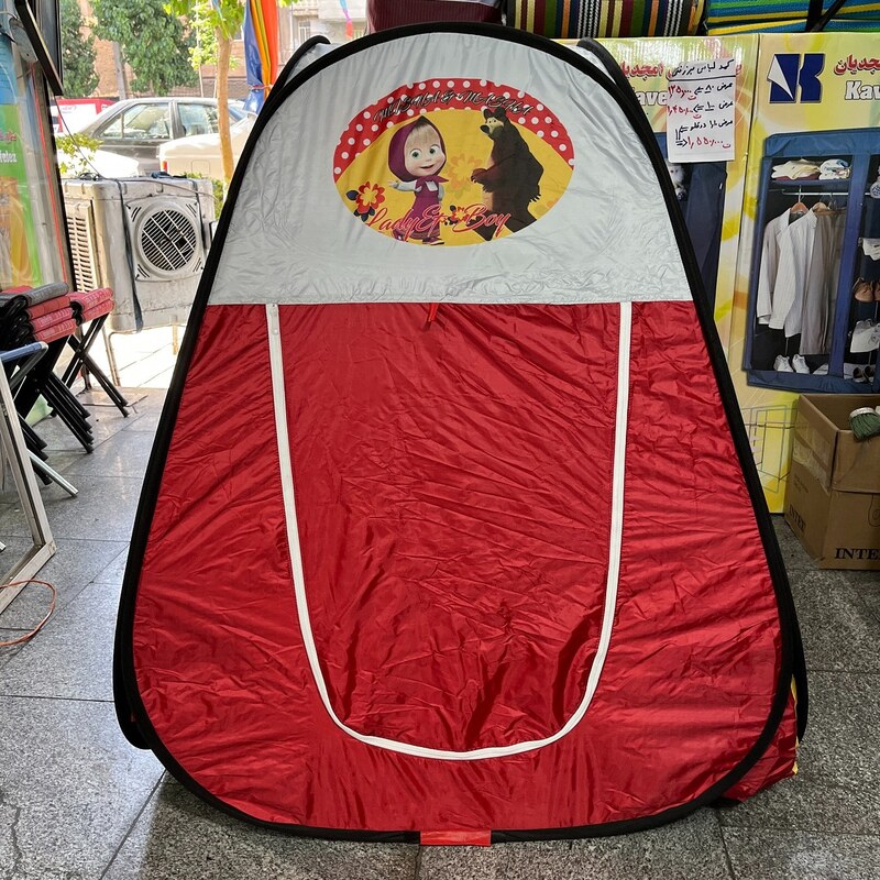 چادر کودک . چادر بازی . کلبه . مدل فنری تاشو مسافرتی طرح ماشا میشا قرمز کد 3
