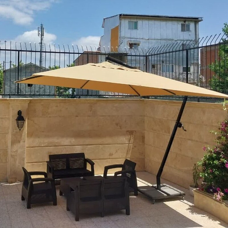 چترپایه کنار مربع پارچه نانو سفارشی با ابعاد ۴ در ۴ متر پایه و اسکلت سفارشی است و سنگین تر سه در سه پارچه چترها برزنت نانو شده است ارسال از تهران با باربری ست پس کرایه می شود .