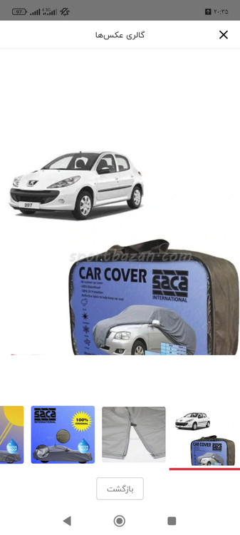 چادر پژو 207 ضد اب ایرانی از برند SAKA