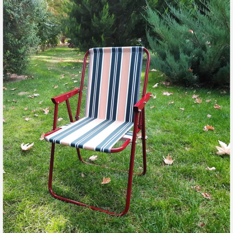 یکی از بهترین راههای نشستن، حالتی است که کمر نسبت به نشیمنگاه مقداری زاویه داشته باشد تا فشار کمتری به کمر وارد شود. با توجه به تمام این مسائل، این صندلی ساحلی را به گونهای طراحی و تولید کردهاند که با استفاده از آن در زمان سفر، بتوان راحتی بیشتری را تجربه کرد. افرادیکه دچار زانو درد، پا درد، کمر درد و … دارند و در هنگام نشستن این درد تشدید میشود پیشنهاد میشود روی مبل بنشینند. اغلب این افراد برای سفر ویا بیرون شهر به دلیل نداشتن راحتی سفر خود را لغو میکنند. این صندلی مبلی جنس رویه آن از برزنت و جنس پایههای آن گالوانیزه بوده که تا وزن 120 کیلوگرم را تحمل میکند. این راحت نشین با پایه را میتوان به راحتی جمع کردبه دلیل وزن کم(2.700کیلوگرم) و زیبایی و در سفر به همراه برد. ابعاد این صندلی در حالت باز 41*51 سانتیمتر با ارتفاع 96 سانتیمتر و ابعاد در حالت بسته 78*52 سانتیمتر با ضخامت 8 سانتی میباشد. طول دسته های این صندلی مبلی تاشو 32 و عرض آن 4 سانتی متر که میتوان در هنگام نشستن و برخاستن از این دسته کمک گرفت