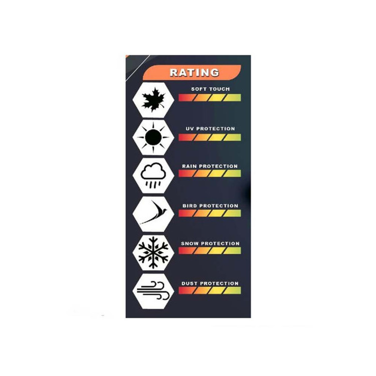 1- مقاوم دربرابر 2- مقاوم در برابر نور خورشید 3- مقاوم در برابر گرد و غبار 4- دو لایه 5- پشت کورک